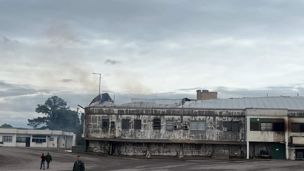 O fogo teve início em um galpão interno localizado no pátio da empresa.