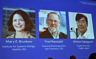 Os cientistas americanos Mary E. Brunkow e Fred Ramsdell, e o japonês Shimon Sakaguchi, ganharam o Prêmio Nobel de Medicina por suas pesquisas sobre como o corpo controla o sistema imunológico, anunciou o júri nesta segunda-feira(6). Os três foram laureados por suas "descobertas sobre a tolerância imunológica periférica".